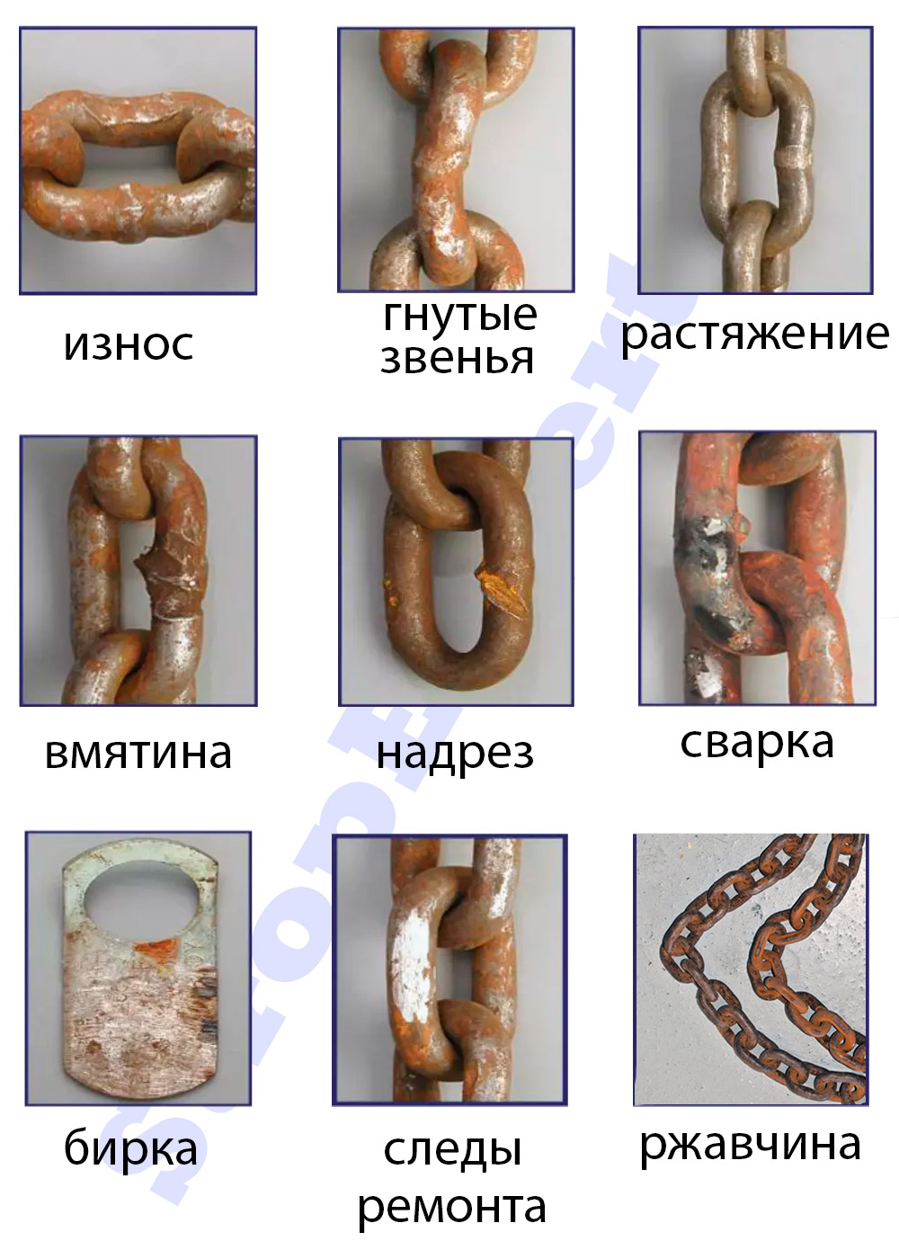 - Деформация или износ металла, уменьшающий площадь сечения на 10% и более (протертость или вмятина на кольце, крюке).