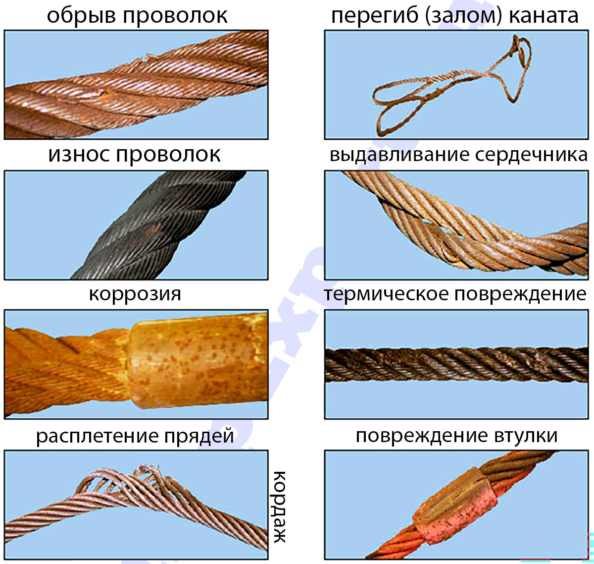 Любые оплавления, побежалость (окалина) от нагрева или точки входа/выхода электрической дуги на канате – причина для немедленной выбраковки, даже если остальное в порядке.
