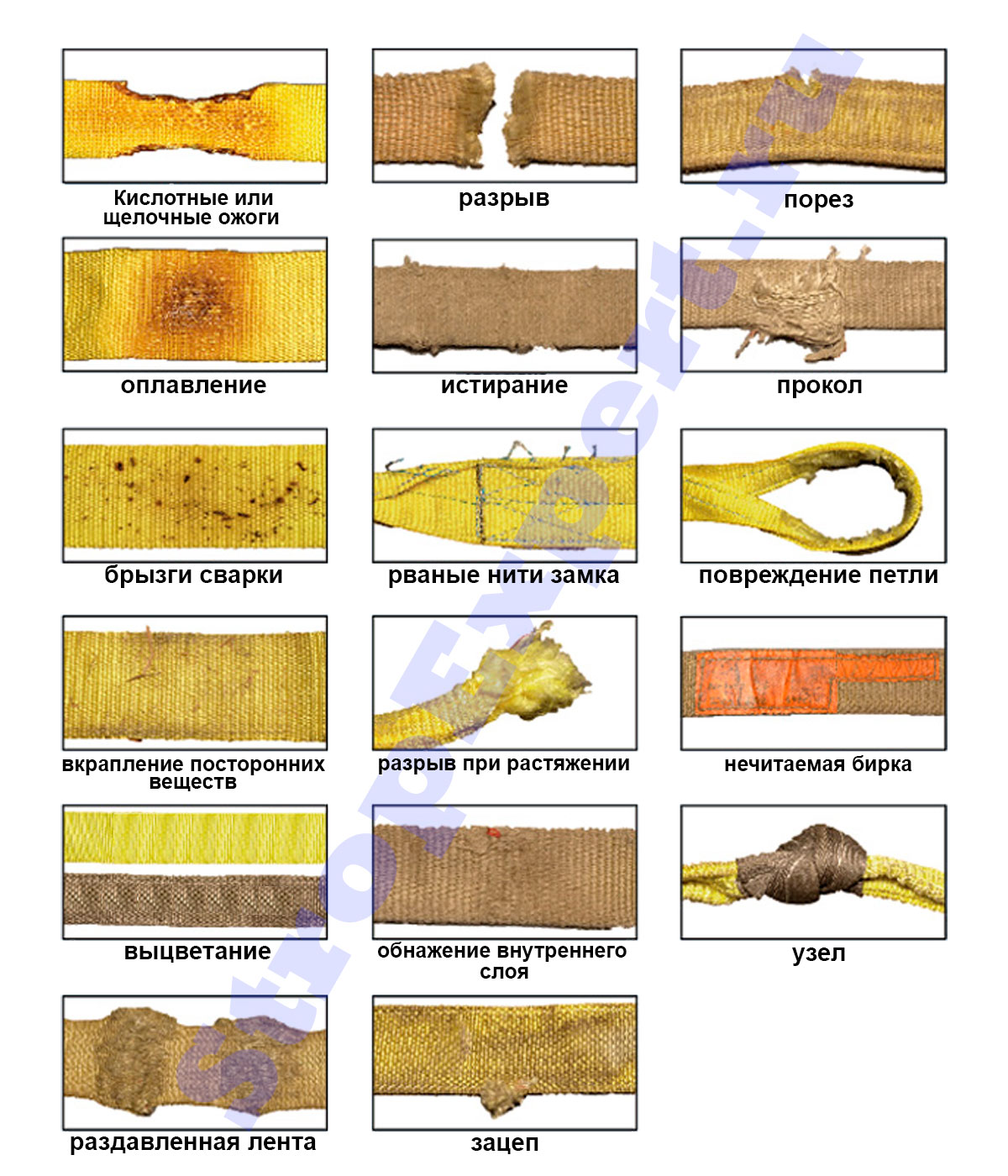 - Разрыв или существенное повреждение защитного чехла (оболочки) – строп выводится из работы.