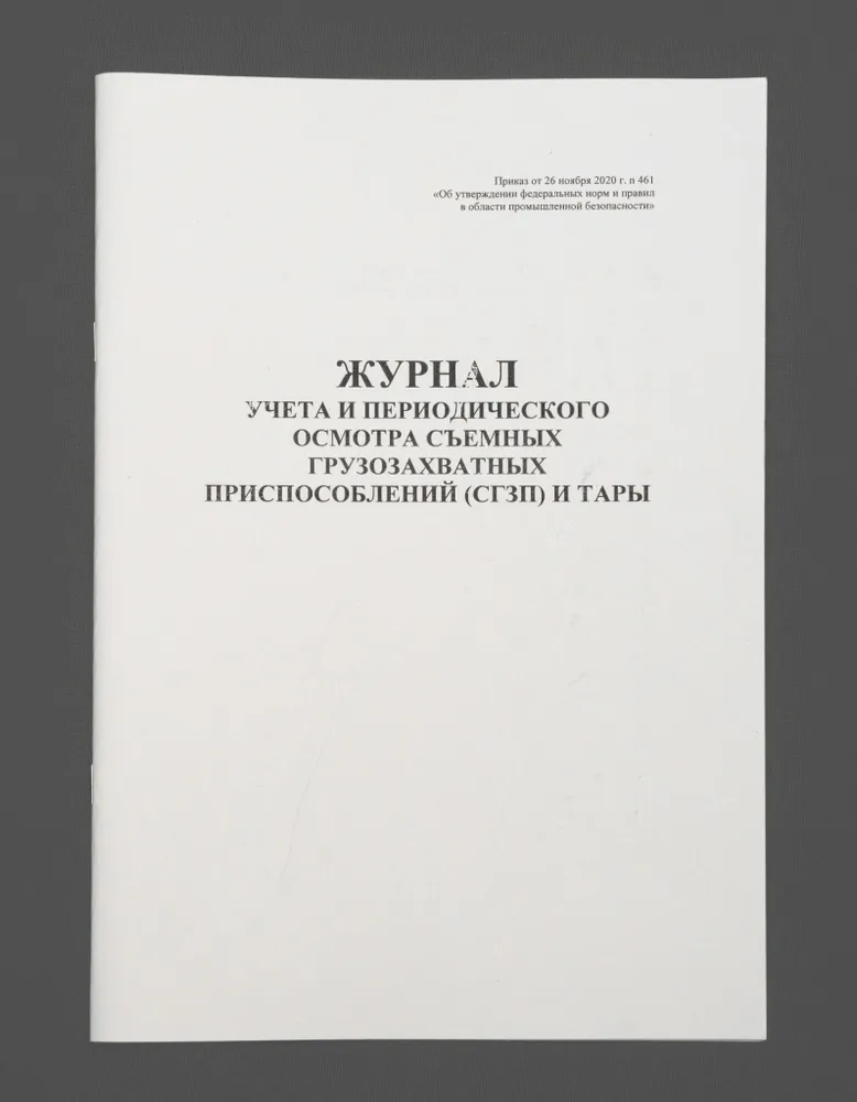 Ведение этого журнала – обязательное требование промышленной безопасности. В ФНП прямо указано: «Решение о вводе СГП в эксплуатацию записывается в специальный журнал учёта и периодического осмотра СГП и тары», а также «результаты осмотра СГП заносятся в журнал осмотра грузозахватных приспособлений». Таким образом отсутствие журнала рассматривается как нарушение.
