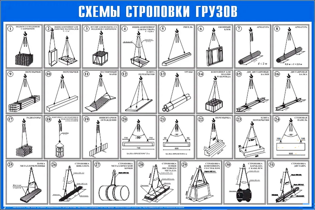 - Типовые схемы строповки разных грузов