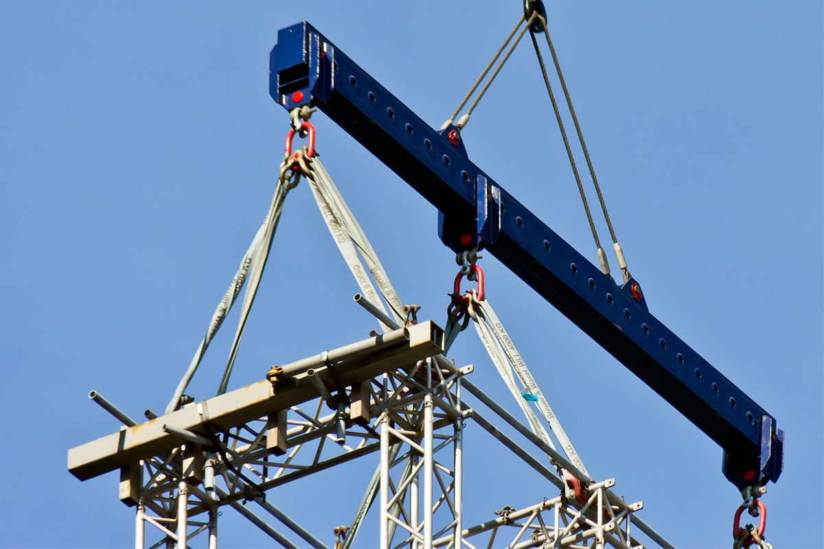 Пример: длинную железобетонную панель можно поднять четырехветвевым пауком, но если угол между ветвями получается слишком острый и грани плиты начинают сжиматься, применяют траверсу. На траверсе точки подвеса расположены шире, и каждая ветвь идет вертикально вниз к своей петле — груз поднимается ровно, без сдавливания.